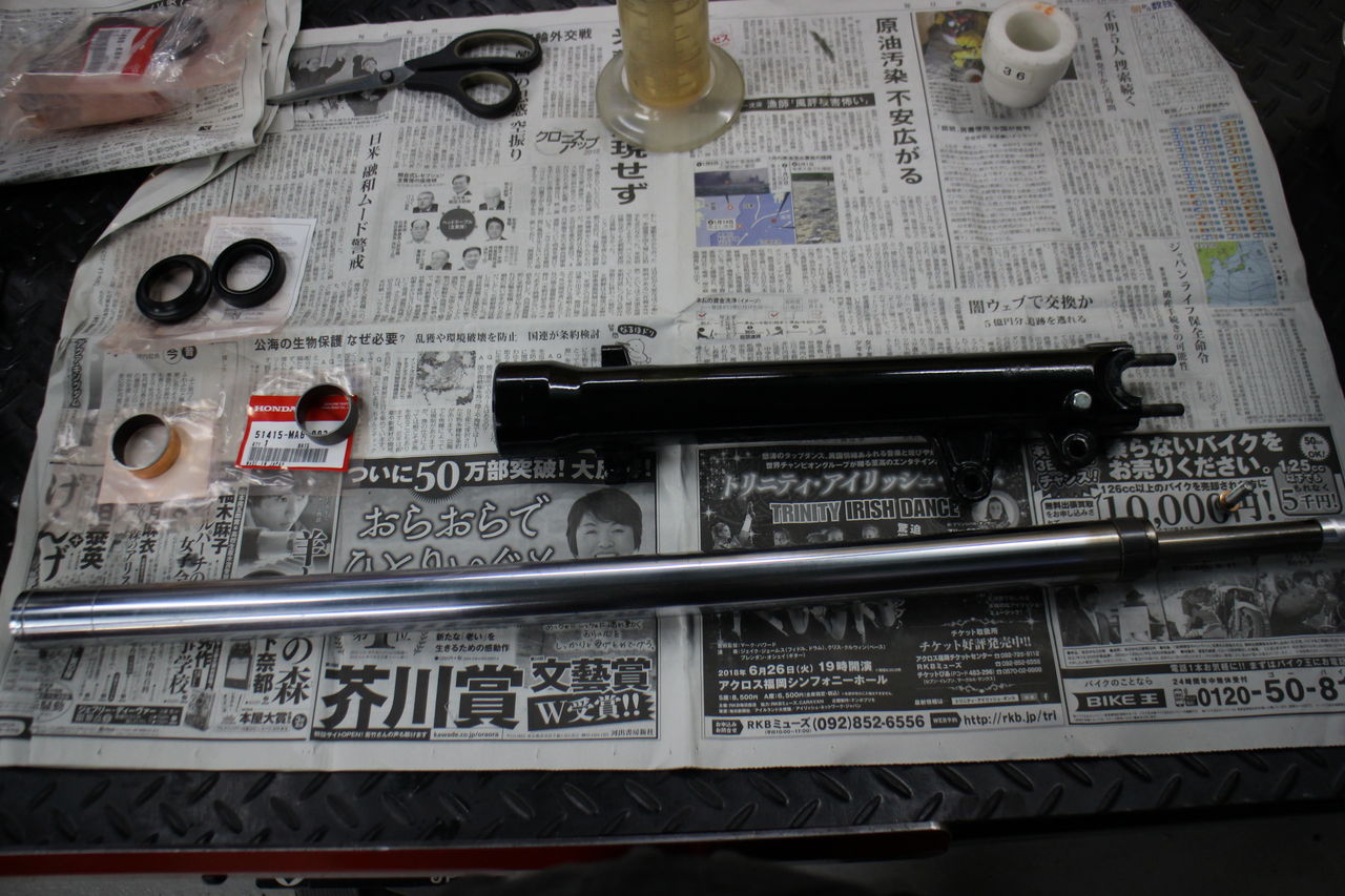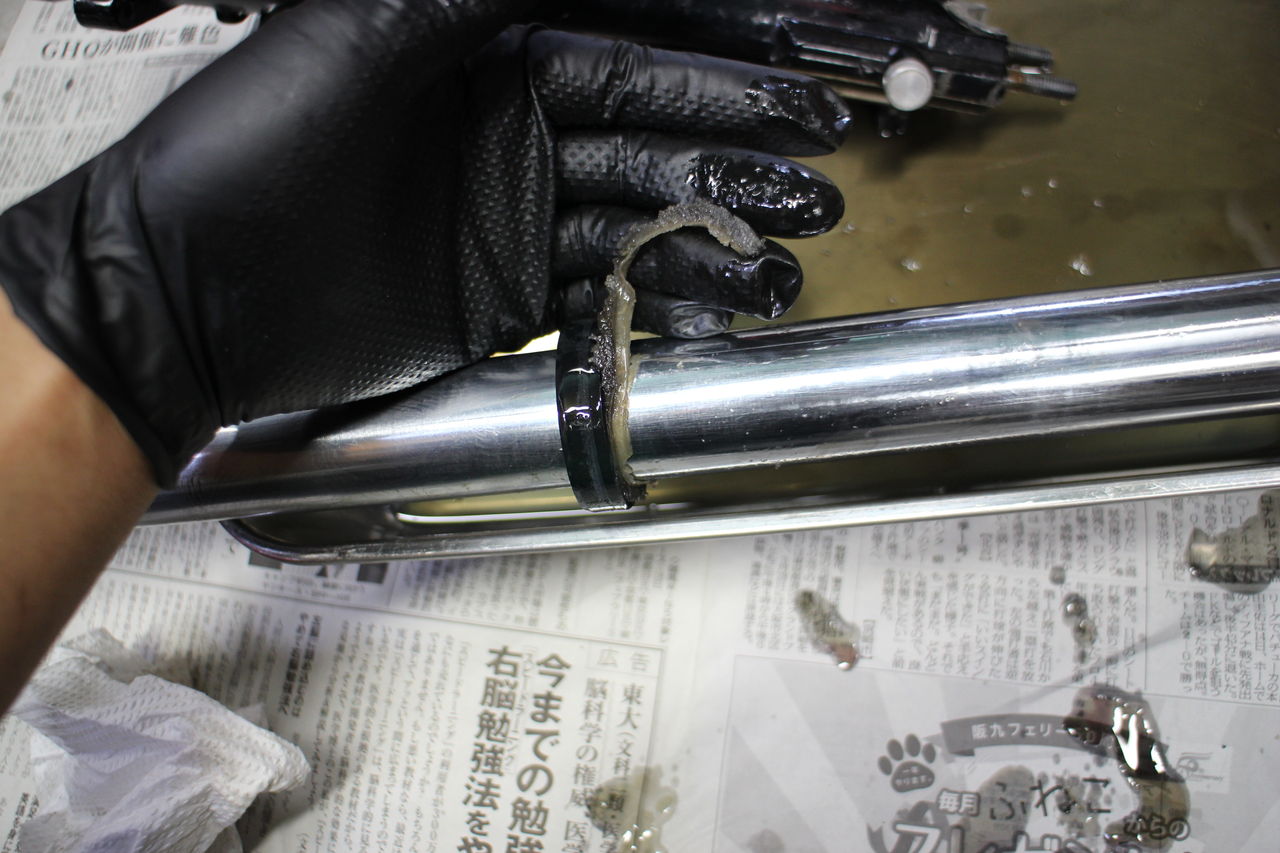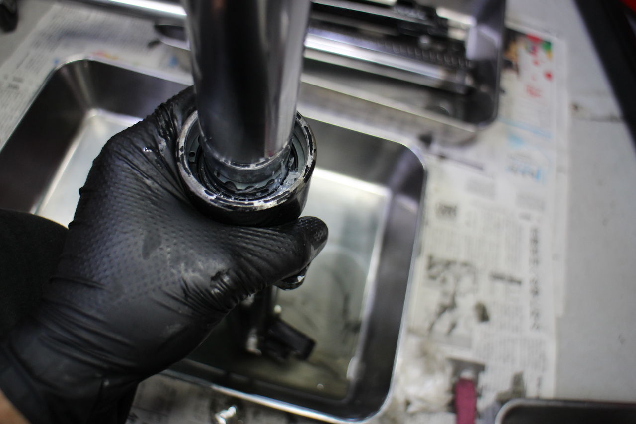 これは先日、私がお客様のバイクのフロントフォークの整備を行った時に起こった出来事なんですが…
